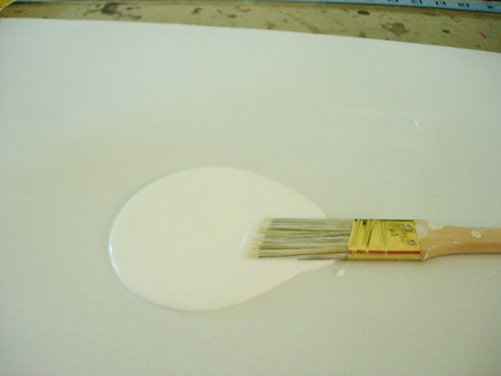 Lay the center piece of tissue paper onto the canvas and then brush more Mod Podge on top of the tissue paper. Move your brush in all directions – this will create a brush stroke look like a real painting has to the canvas once the Mod Podge dries.