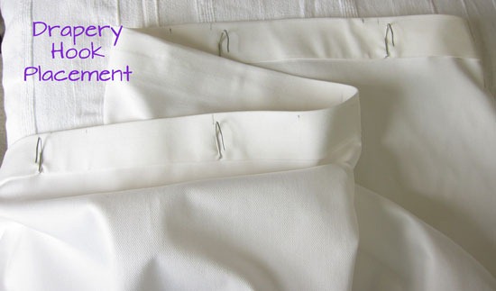 6. Attach drapery hooks evenly across the top of panel. My fabric was 58” wide and I placed a hook every 8”.