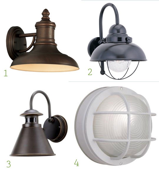 1. Lowes – Portfolio Bronze Outdoor Wall Light Item # 15345 $49.97 2. Lowes – Seagull Lighting Black Outdoor Wall Light Item # 157380 $110.00 3. Home Depot – Hampton Bay Model # HB480117MP-237 $49.97 4. Home Depot – Hampton Bay Bulkhead Light Model # HB8824P-06 $14.97I have one more outdoor decorating idea that I will be sharing with you soon. Psst… it was a project from my book, Instant Decorating that I am tweaking.