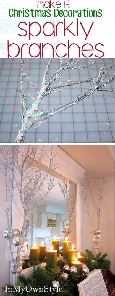 See more DIY Holiday Projects where you will find more fast and easy Holiday DIY Decorating ideas that you can make just like these sparkly glitter branches.