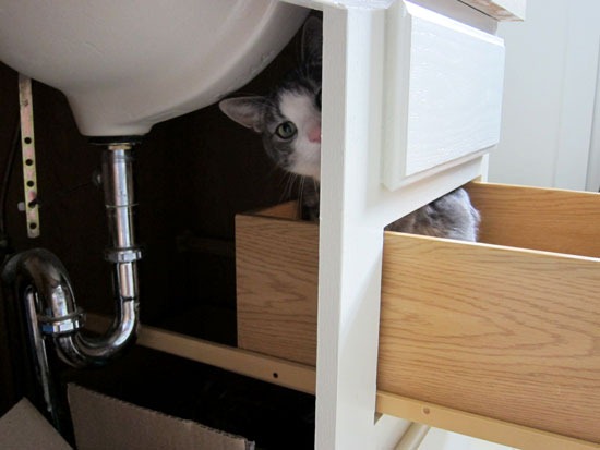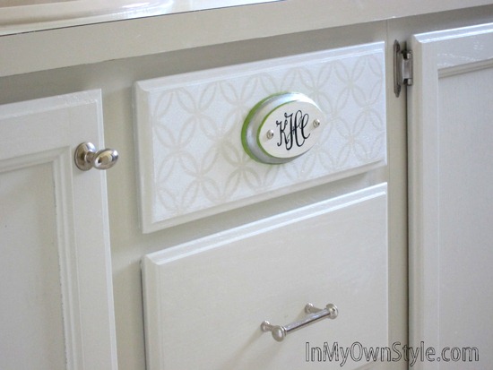 Perhaps you have this same situation in your bathroom – along with a curious kitty. If not, this decorative treatment could be done on the top drawer of a dresser or any piece of furniture.