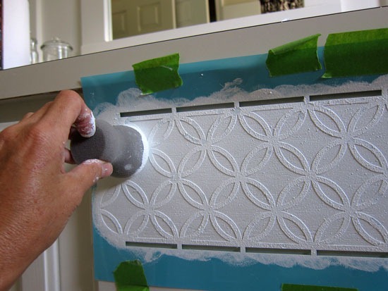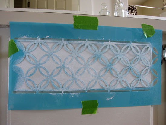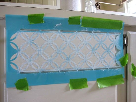 Very clever idea to help make those empty spaces look like they belong. The stencil pattern is really pretty!