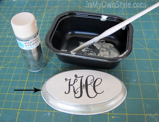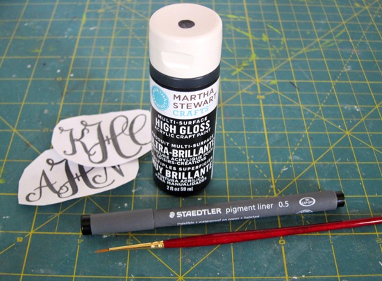 6. To paint the monogram – I used a permanent marker and then applied gloss black paint in Beetle Black with a very fine tipped brush.