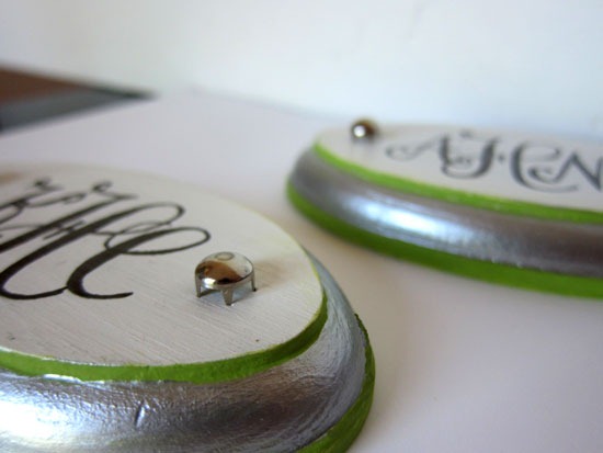 I’m having trouble finding the decorative nail heads– any ideas? I LOVE the little plaques and will be making them to label my boys’ mud room hooks and bedroom doors:)