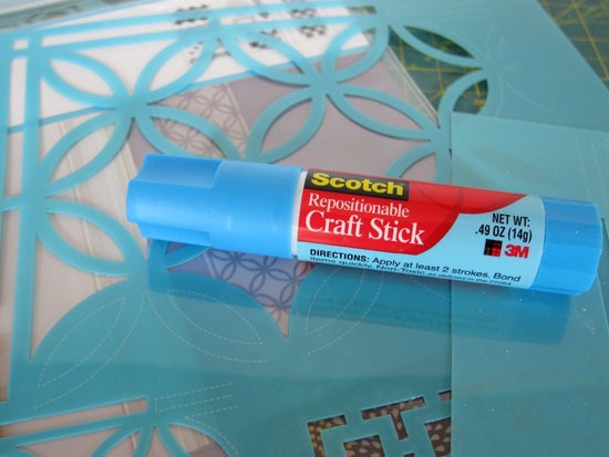 2. Apply re-positionable craft glue to the back of your stencil. This will allow you to place the stencil completely flat against the surface you are working on without leaving any glue residue.