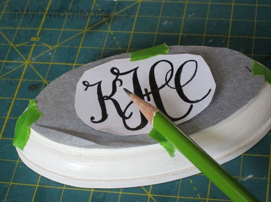 I do not own a Silhouette cutter to make myself a vinyl monogram to attach to the plaques so I need to do it the old fashioned way.