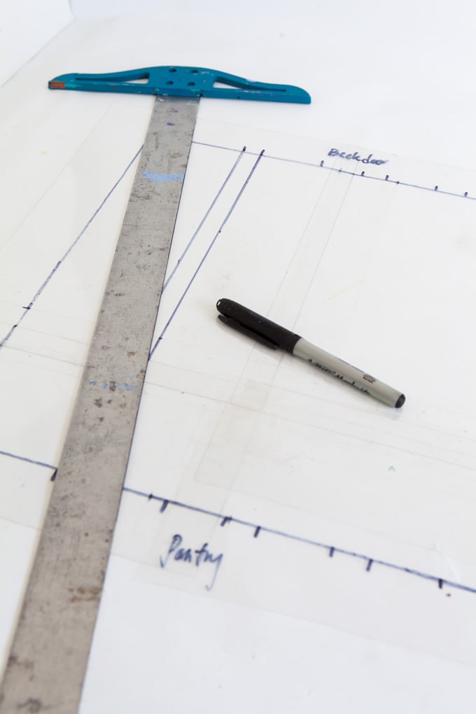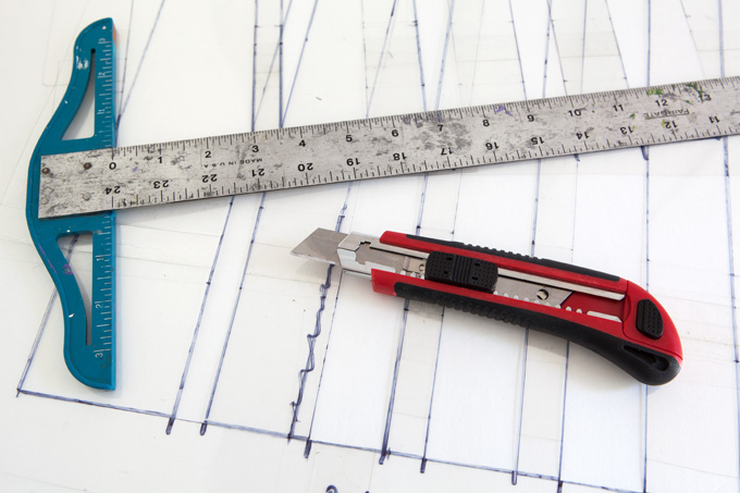 6. I laid the first sheet over the foam core with the drawn lines and traced the lines to the acetate with a marker. I repeated the process on the second sheet.