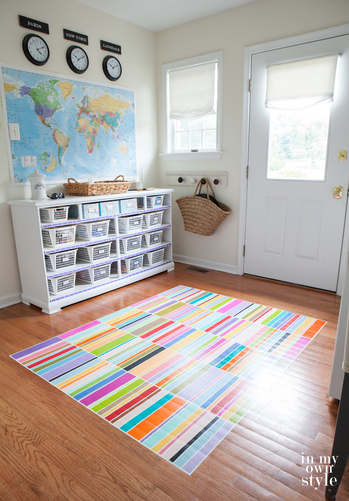 I have to admit, this was labor intensive. I lost 4 pounds simply because I had to move up and down and all around the rug so much to create every stripe a different color. I guess I can view that as a good thing, right? :-)