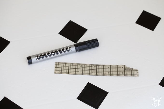 2. Using a clear ruler helped me make sure I was on the lines. The paint marker dries immediately. I made a few mistakes and had to dab some white paint over them after I was done.