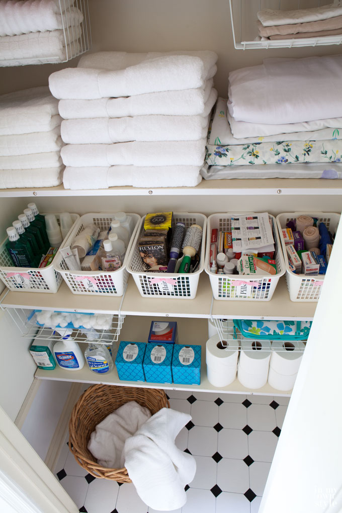 Looks terrific! I too recently reorganized a couple of hallway storage closets. Those thrift store and dollar store baskets work great ;-) Organized closets are a joy to use.
