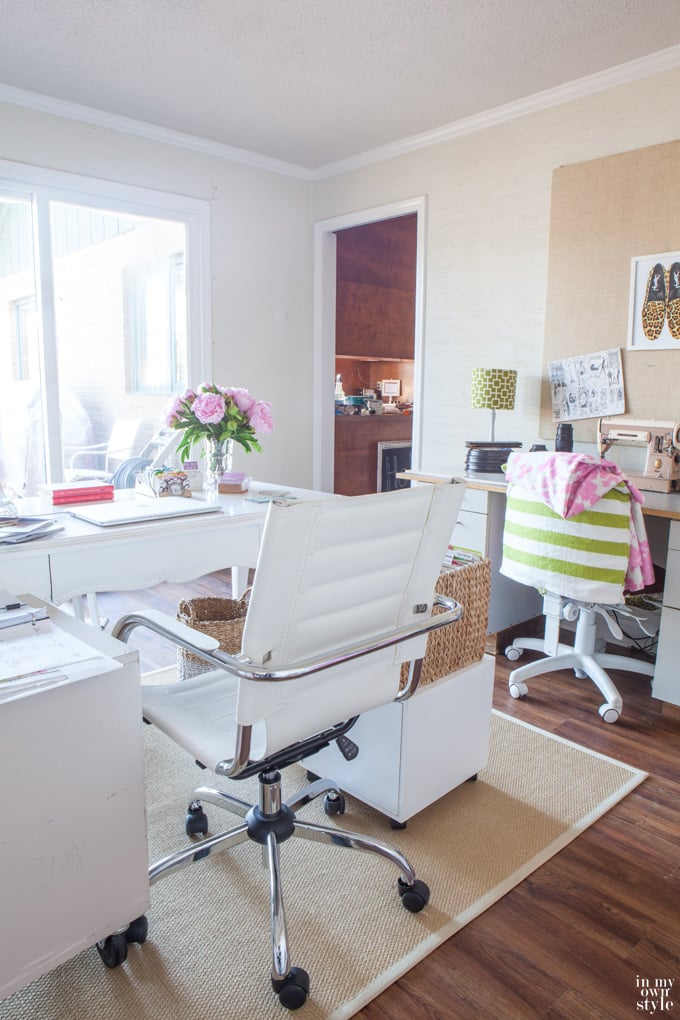I am drooling over your office space. Wow, I would love a big open space and bright white walls. Just lovely flow in your space and I can feel the creative flow.