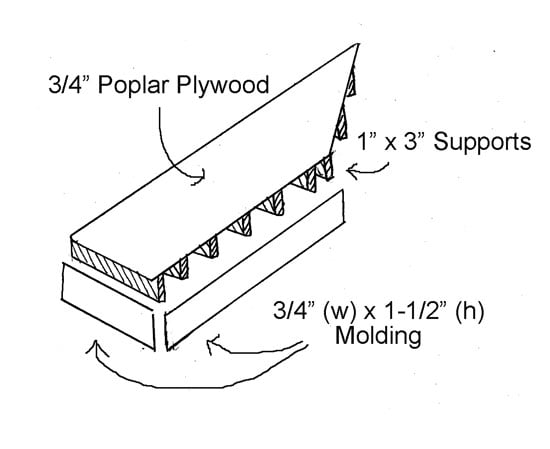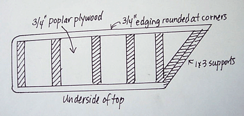 The top is nothing more than a box with a plywood bottom, top, and trim on the sides to enclose supports that are lined up inside.
