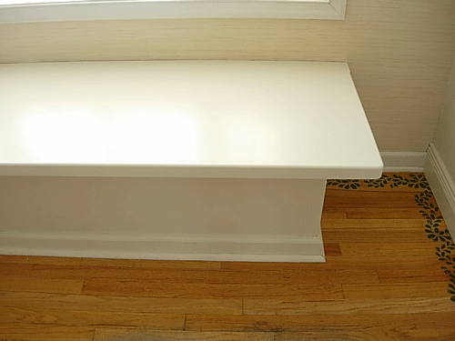 2. We followed S. Susanka ( the not so big house architect) directions for a banquette and at the last minute decided to raise it one inch to clear an electrical outlet inside the bench frame.