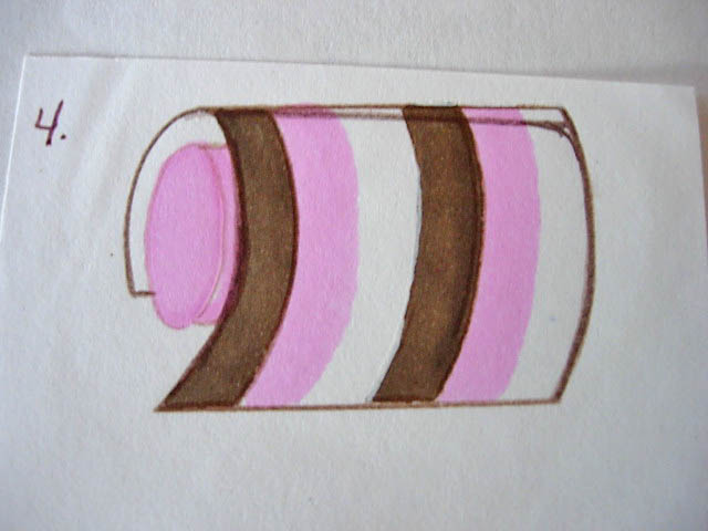 2. Cut a piece of the first gift-wrap slightly larger than the first tubes end and place face down on work surface. Place one end of first tube on the wrong-side of paper and trace around tube, then draw a dotted line about 1/2 -inch around it. Cut circle out on dotted lines. Do the same for the other tube and the coordinating gift-wrap.
