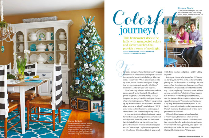 I always LOVE popping over here, Diane – there is always so much color love! Its so fun and festive! Your style is always one of my favorites! And congrats on the BHG feature – YAY! Merry Christmas!