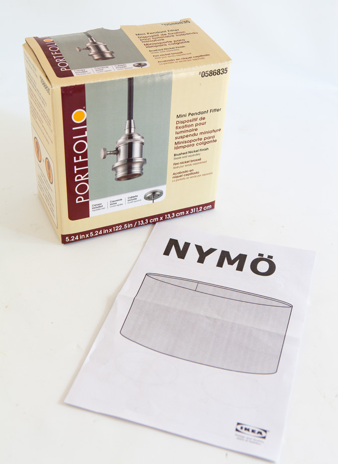 I found this NYMO shade at IKEA…a.k.a. ...the Swedish boutique. :-) Time for an IKEA lighting hack! The shade comes in a flat box with the shade rolled up and a top and bottom ring. As with all merchandise from IKEA, you need to assemble it, but it was very easy, no tools required.