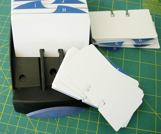 Can you tell me how you added the paint chips dividers to your rolodex? Did you just glue them to the index Cards? Your rolodex is adorable and functional ! Thanks for sharing.