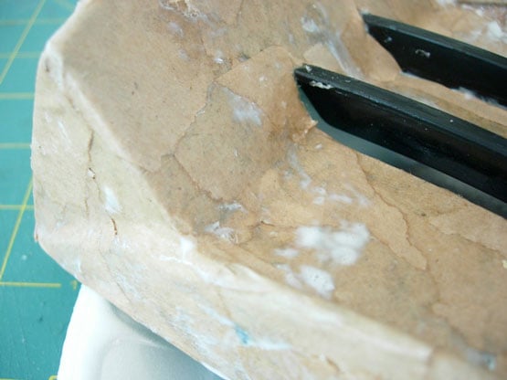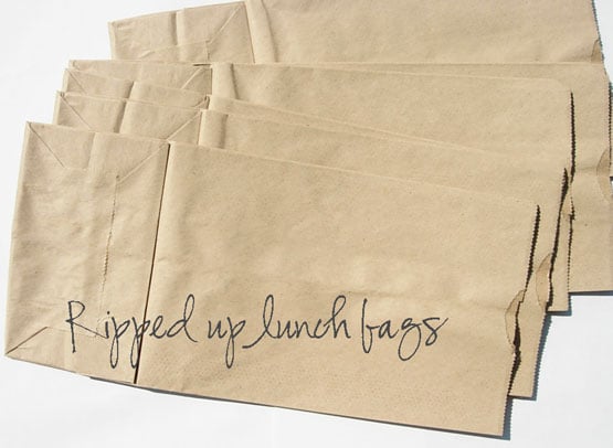 These are just your ordinary brown lunch bags that I ripped up to used to decoratively cover the base. You could use just about any paper to cover the base. Other options to consider – maps, pages from an old phone book, gift wrap, scrapbook paper, fabric, paper place-mats from your favorite diner – let your imagination and personal style guide you.