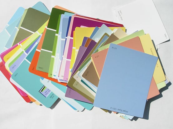 I love seeing all the colors together – so inspiring to me. Valspar and Olympic paints have the best chips, as they are pretty large. I don’t feel too guilty taking a few extra chips from time to time as I do buy all my paints and supplies there.