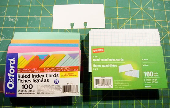I found graph paper and colored index cards at Walmart for a few dollars to make some decorative cards like Brain and Kristen used.