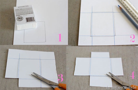 3. Cut outside the lines to cut off each corner- so that no pencil marks show on the 4 tab like sections.