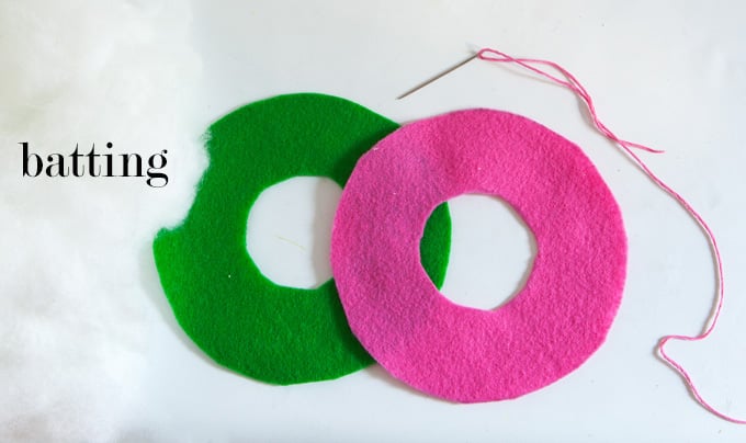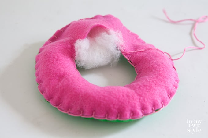 5. Stuff batting in to wreath to fill. Sew opening closed.