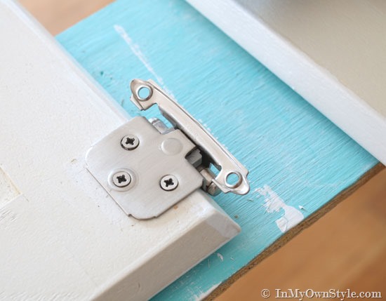 Since I was just replacing the hinges, I didn’t have to drill new holes for the new ones in the cabinet doors. If you have ever installed hinges and then put the doors up only to find they didn’t line up or close correctly – you know how frustrating it can be to hang doors.