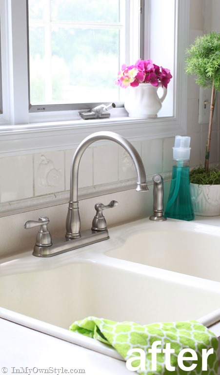 Isn’t it great how one thing leads to another!!! We had to replace the sink faucet not that long ago and went from something similar to what you had to something very similar to what you have… my point is that I was AMAZED at how with the faucet having that arch and being higher above the sink, it made to sink feel so much bigger! LOVE that!