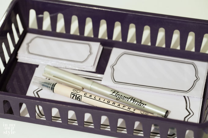 I matched the label size to the appropriately sized bin. I used a calligraphy marker to write the category.