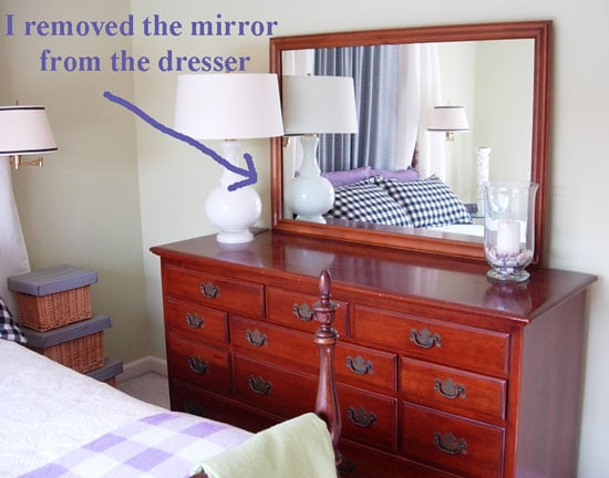 I took the mirror from my guest room. It was attached to a hand me down dresser. (I completely updated the dresser in this post)