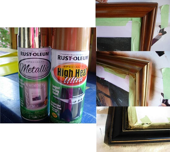 I painted the mirror black and gold with some rust and verdigris detailing. I used Rust-Oleum Metallic Spray Paint in Gold and Rust-Oleum High Heat in Aged Copper.