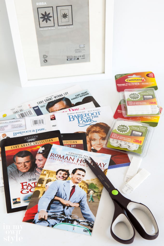 Creating decor from stuff I have on hand also makes me happy. It is the most affordable way to make a change in a room. I figure since I bought and like the items, why not switch them up and if they are not actually a decorating item, repurpose them to become one. That is what I did with the covers of the DVD cases I had from my favorite movies. I made them into decor… the best kind of decor – custom fit, practically free artwork, and for me alone.