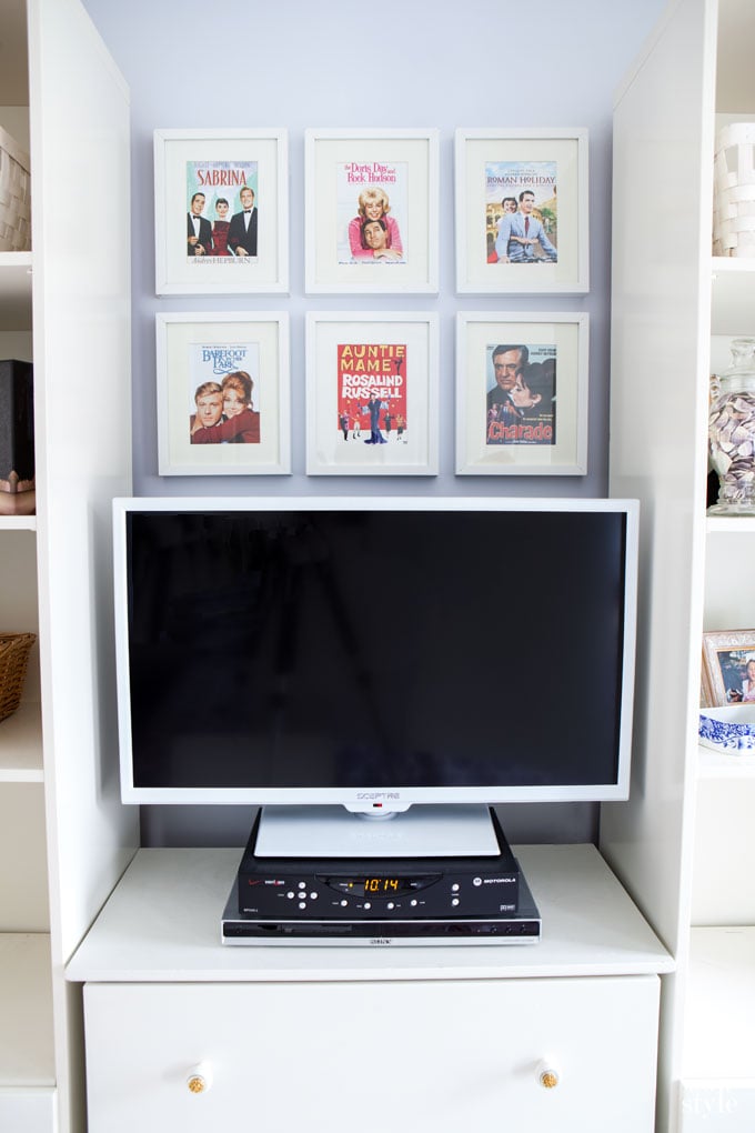 Great idea! I am thinking of doing an entire wall of this in the basement. Oh wait, I just remembered that my husband sold all of our DVDs and upgraded to stream them over our Apple TV. :( Now I am also wishing I didnt toss out all my old TV guides.