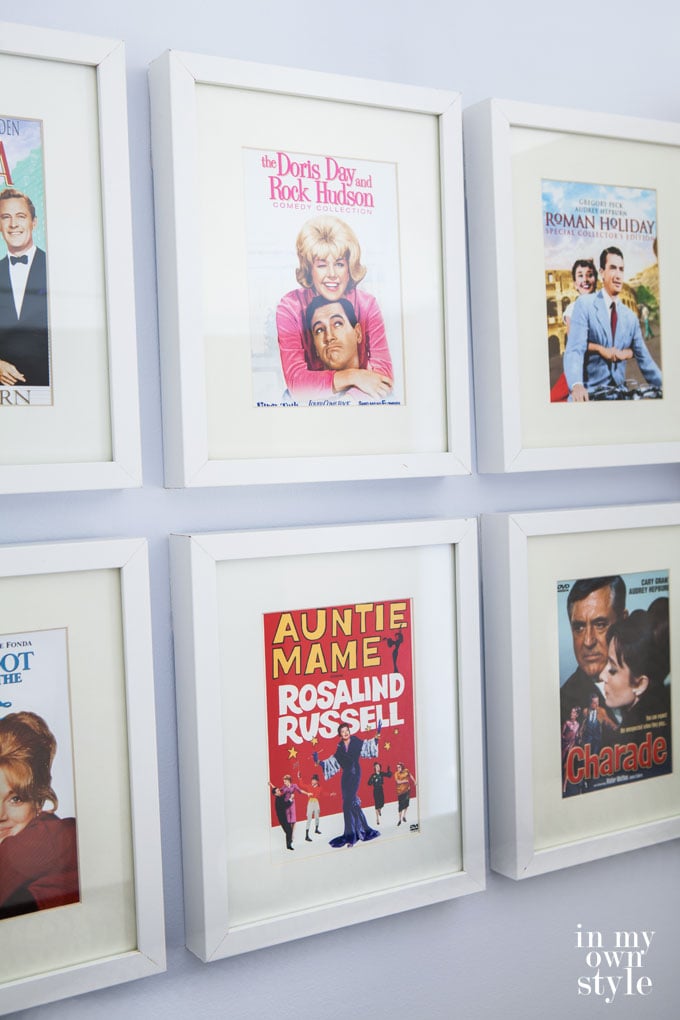 The hardest part of this project was choosing only 6 of the covers of the movies I love. I have so many favorites. I chose my top 10 then used the covers that had the most color in them. That Touch of Mink with Cary Grant and Doris Day didn’t make the cut. l wanted it to be part of the gallery, but the colors were too dark. :-(