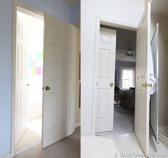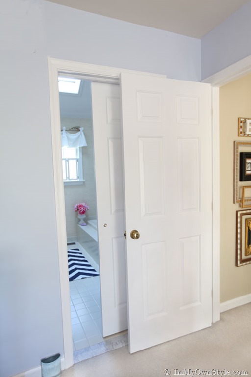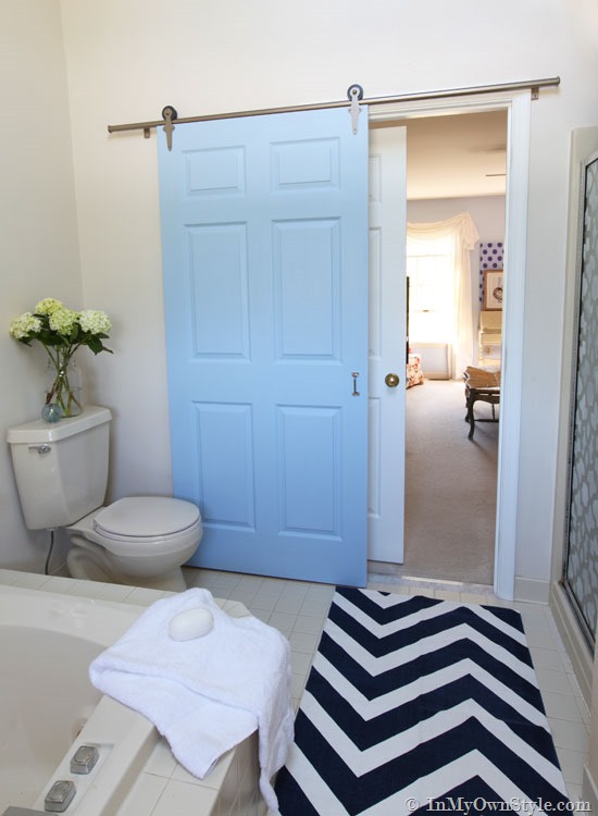 LOVE your bathroom door! Fun that you painted it blue on one side and white on the other.