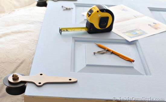- Door – A solid, not hollow-core door that is at least 6-inches wider than door opening. It can also be taller. My original swinging door was 30” wide. I bought a new door that was 36” wide and about 1-inch taller. You need the overlap so the doorway opening will be completely covered when closed.