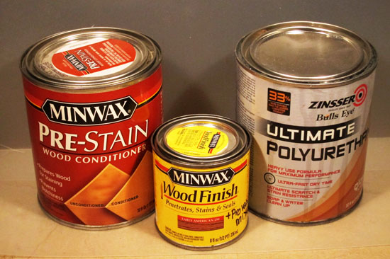 Once the pre-conditioner coat was on I had up until 2 hours to then apply the stain. I used the traditional Minwax stain in the yellow can.