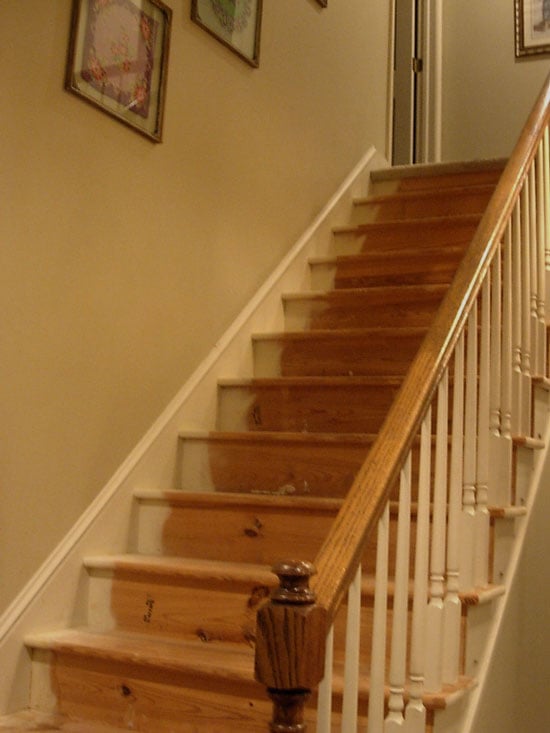 The downside: the steps were not hardwood, but soft pine boards with lots of rough knots and imperfections and overspray of paint. I didn’t let this stop me though.