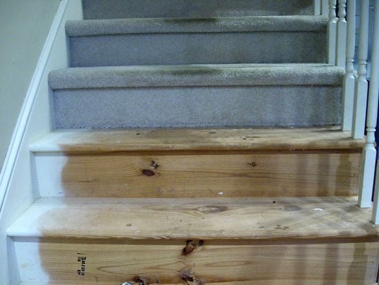 Now I have them. The carpet held up extremely well all that time, but after seeing so many successful stair makeovers on so many blogs, I decided it was worth a shot, plus it was actually a whole lot cheaper than having the carpet on them cleaned!