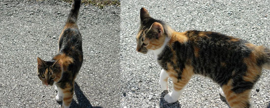 Shasta (a tortoise hair) and Pepsi (a calico). They are sisters and I adopted them from the local shelter 5 years ago.