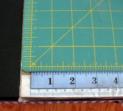 On half of the table I placed a piece of Homasote and a rotary cutting mat. I also placed a measuring tape along one side of the table and secured it with packaging tape.
