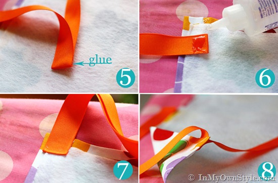 5. Fold ribbon in half. Add a dab of glue right in the fold.