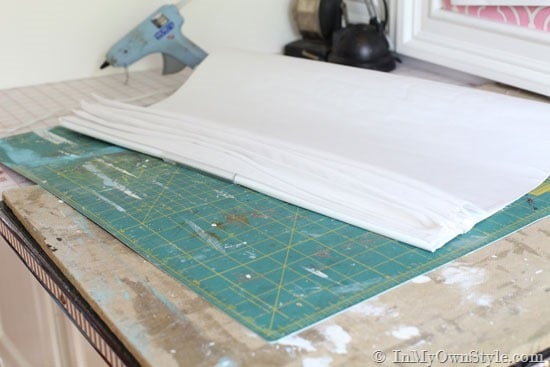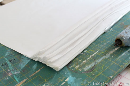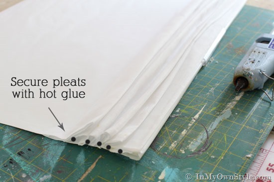 11. Place a dot of hot glue or fabric glue under each pleat and on top in between each pleat. Gently press into the shade.