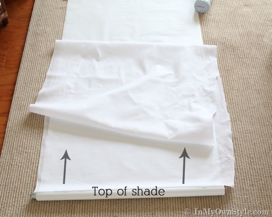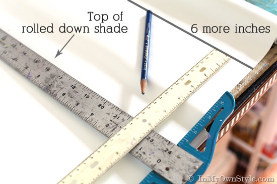 2. Place shade on work surface and unroll making sure the side the fabric is going to be on is face up. Start at the bottom of the shade – measure up from the bottom to the top of the shade and mark where the unrolled length goes to, add 6-inches.