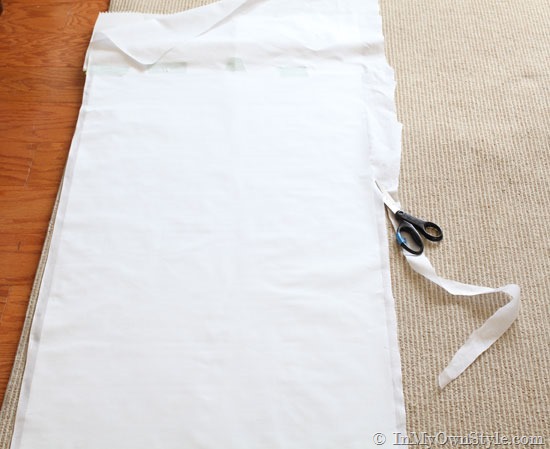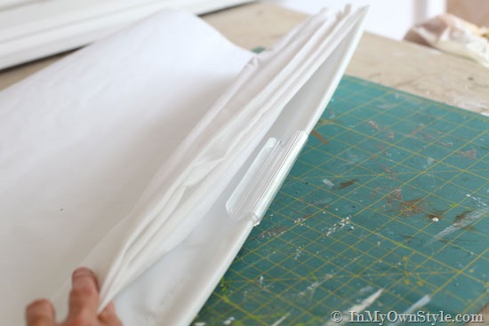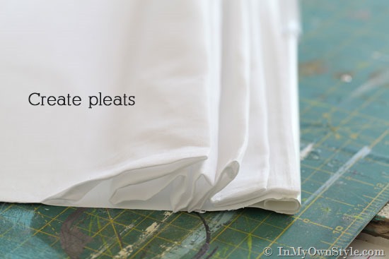 10. The excess center fabric will hang from the bottom. Using your hands – create loose pleats.