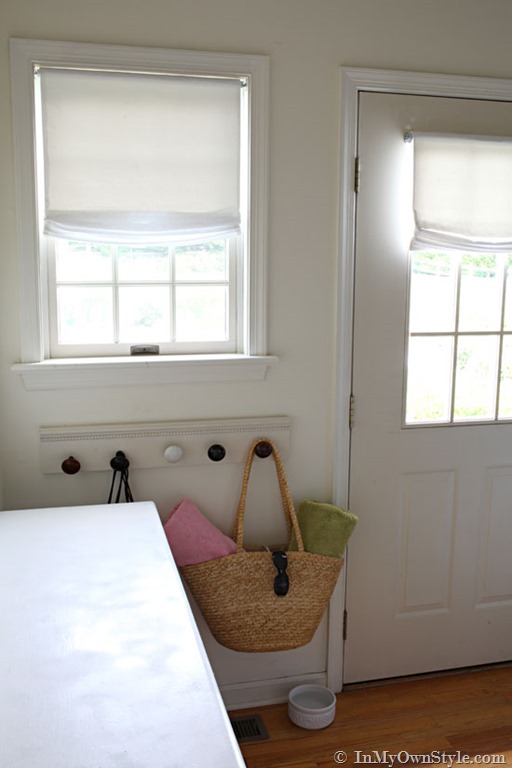 I have changed a lot in this mudroom, even the painted rug that you see on the floor in this photo. I painted a new more colorful rug over it. You can see it here –How to Paint a Rug on the Floor
