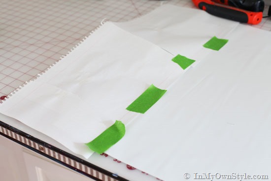 3. Mask off the bottom 5-inches of the shade with scrap paper and painter’s tape. You don’t want spray glue to get on this section.