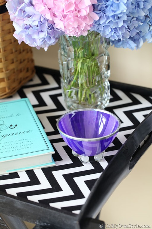 Love this! Your projects are just perfect…. the colors and fabrics you use are so colorful and cheerful. I love that purple bowl on the tray…do you remember where you found it?