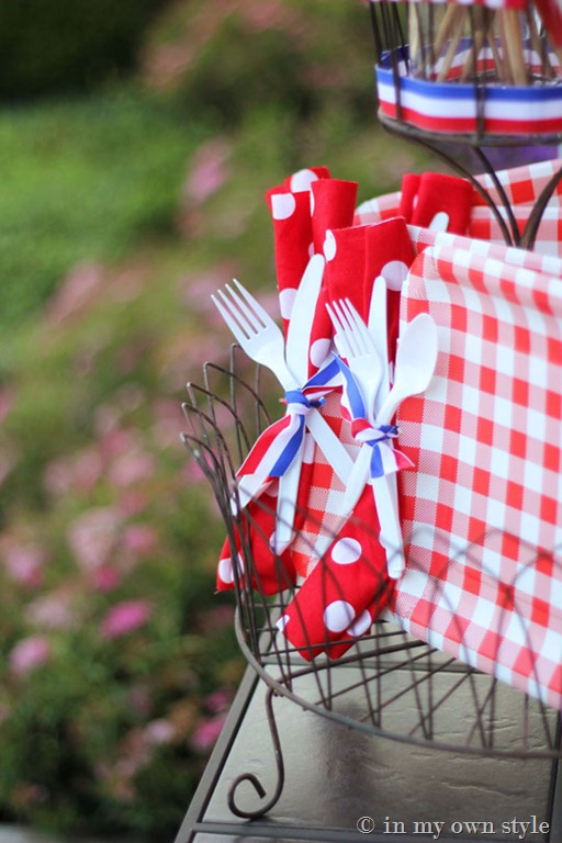 This is perfect for having all your needs together. So many times I have the utensils in the separate container next to the napkins & paper plates! Its nice to have it easily together like this for grabbing & moving on to get your food! Plus it looks so darn cute!! Thanks for sharing!
