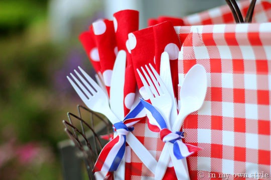 What a lovely idea. I often hate trying to carry the fork? , ?spoon, napkins while carrying a plate of food. Thank you for this fabulous idea